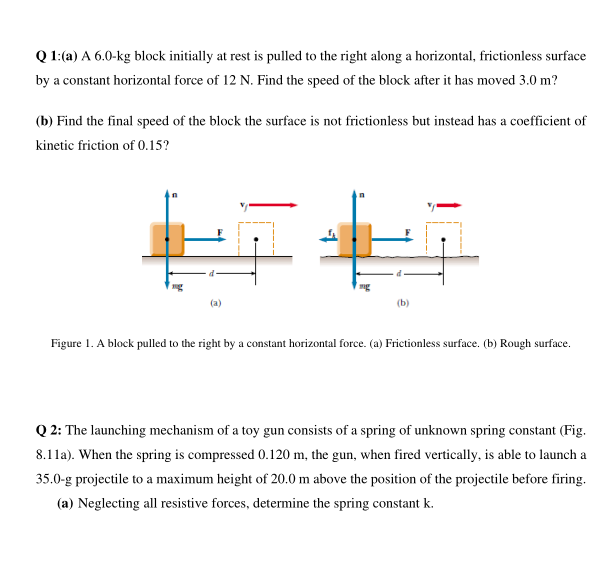 Find the blocks speed after it has moved 3 m. Where F 6. A 60 kg block initially at rest is pulled to the right along a horizontal surface having a coefficient of kinetic friction of 015 by a constant horizontal force of 12N.
